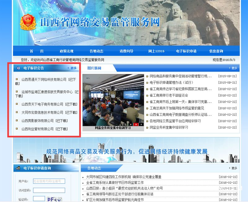 電子標識審驗發(fā)放部門(mén)受理申請后,將在7個(gè)工作日內完成審驗。審驗通過(guò)的,在“山西省網(wǎng)絡(luò )交易監管服務(wù)網(wǎng)(http://202.99.222.98:8080/)”上進(jìn)行7天公示,公示結束后為申請人提供電子標識代碼下載服務(wù)。審驗未通過(guò)的,告知申請人并說(shuō)明理由。