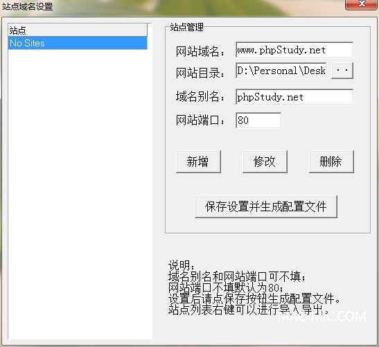 7、設置我們的站點(diǎn)信息,新增并保存設置并生成配置文件