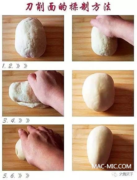 刀削面對和面的技術(shù)要求較嚴,水、面的比例,要求準確,一般是一斤面三兩水,打成面穗,再揉成面團,然后用濕布蒙住,餳半小時(shí)后再揉,直到揉勻、揉軟、揉光。如果揉面功夫不到,削時(shí)容易粘刀、斷條。