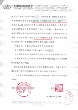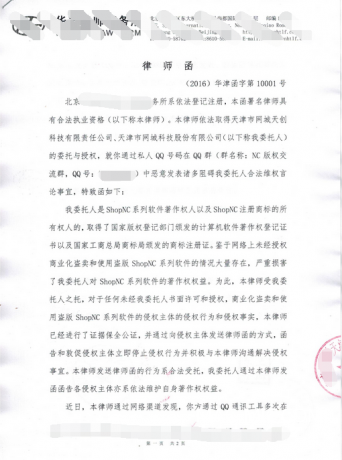 有關(guān)收到ShopNC計算機軟件著(zhù)作權侵權律師函的建議
